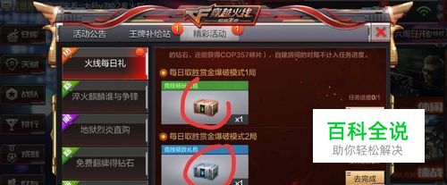 cf每天晚上零点之后会更新任务,做完规定的任务之后,会有宝箱,里面能开出2到20钻石不等,具体还是靠运气。