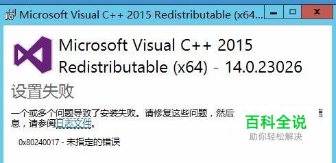 装机后,安装VC2015安装失败,0x80240017 - 未指定的错误,下面我来告诉大家解决办法