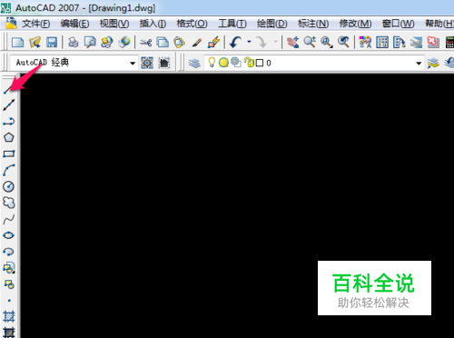 打开CAD后,鼠标移动到左上角的直线符号,点击它。