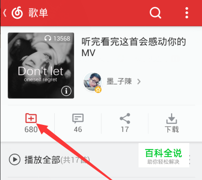 然后点击页面如图所示,就可以将该歌单进行收藏啦