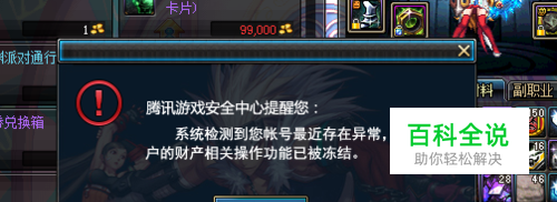 腾讯游戏安全中心提醒您:系统检测到您帐号最近存在异常,您帐号的财产相关操作功能已被冻结。