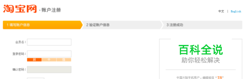 登录的前提:我们需要注册一个淘宝号,如下图,完成其中的三部才算注册成功,也可使用手机快速注册。(分为中英文页面,方便国外朋友注册)