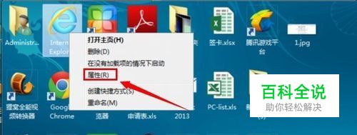 在桌面上右击【Internet Explorer】浏览器,选【属性】