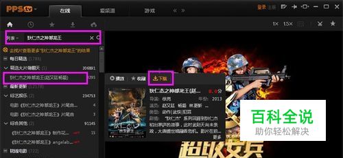 接着我们可以到这里的搜索框上输入要下载的电影啦,输入“狄仁杰之神都龙王”,在下面的信息中会显示出来(有些电影还没有在pps上上映那就没办法了),然后将鼠标移到片名上,右边会显示出信息,也会看到有“下载”按钮,如可以点击证明可以下载,点击不了就还不支持下载。