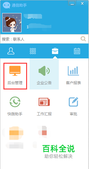 电脑端 (1)登录通信助手客户端,点开“后台管理” (2)在客户管理——所有客户中查看