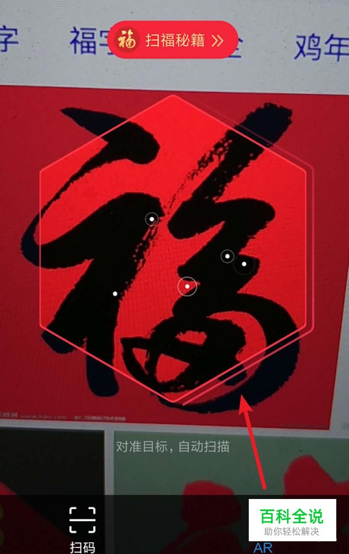 点击打开后,把手机上的镜头对准电脑里的福字图片,等待识别出这个福字。