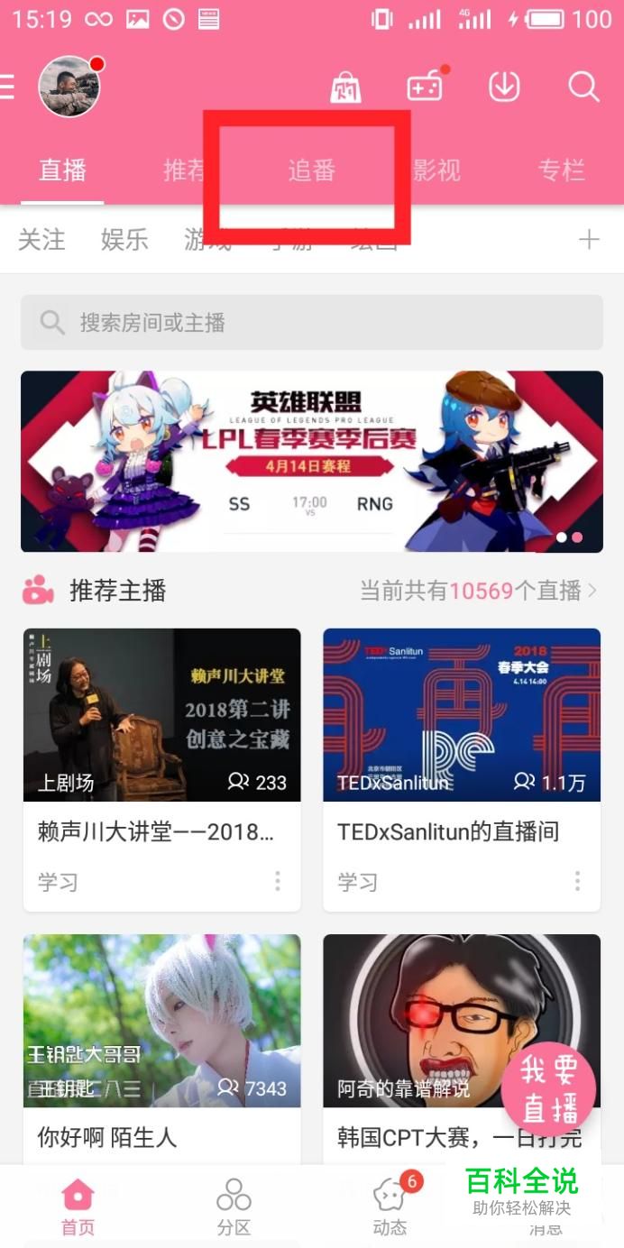 首先,我们需要打开b站app,在首页上方点击番剧,进入番剧界面