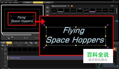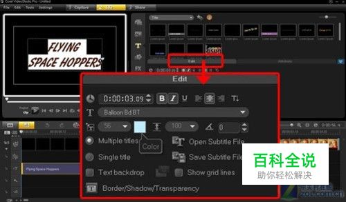 接下来加上影片开场字幕。从[编辑]工具栏中进入标题,把内建的标题格式拖曳到时间轴上,在预览窗口上点两下进行文字编辑。亦可以从预览窗口中将文字放在任何你想放的地方。