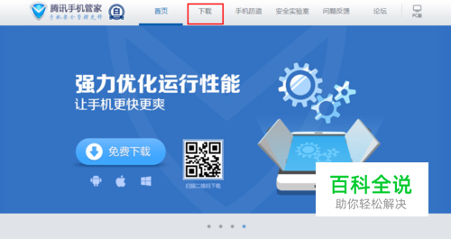 可以登录腾讯手机管家的官网: 在电脑浏览器地址栏输入官网网址: