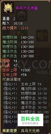 在8090武尊里面,有一件装备非常稀有,几乎能吸引玩家的眼球,那就是兵马大元帅盔。大部分玩家也就只能看看,基本都没法获得这个头盔,下面就为大家简单介绍一下兵马大元帅盔。 首先兵马大元帅盔佩戴需要:兵马大元帅,这一点基本上问题不大,官职大部分玩家后期都能升级到这个。属性的话,兵马大元帅盔增加140-200物防,130-180魔法防御,攻击也是大幅增强,130-300提升比较大,另外强化激活属性也相当不错。 下面说一下兵马大元帅盔的获取方式吧,那就是寻宝,而且兵马大元帅盔寻宝获得的几率也比较低。所以一切都看运气吧。