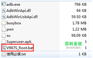 将上面下载好的中兴V967S一键Root工具包在电脑上解压,然后双击运行【V967S_Root.bat】,如下图