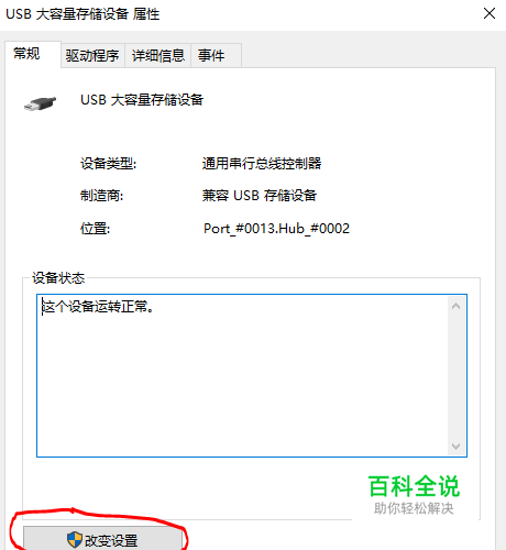 打开设备管理器,查看”通用串行总线控制器“中的”大容量存储设备“,右键打开其属性。