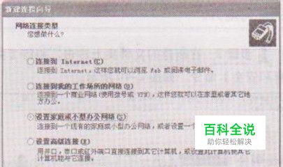 步骤2:单击【下一步】按钮,在弹出的对话框中选择所需要连接到的网络类型.如图(2)所示。 图(2)选择网络连接类型