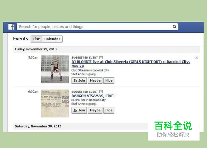 选择一个活动来提问。 在Facebook首页左侧找到“活动”。 在“近期活动”中选择一个活动。你也可以在“活动日历”中选择一个时间更加靠后的活动。 点击活动名称进入活动页面。