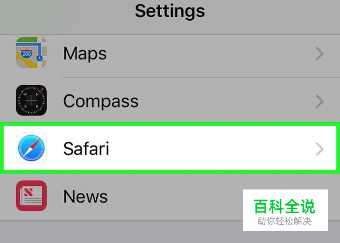 滑动屏幕,点击 Safari按钮。在“设置”页面中向下滑动到大约三分之一页的位置,就能看到“safari”按钮。