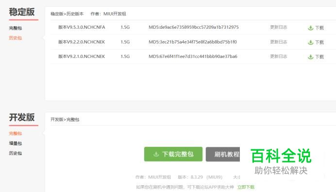 注意自己的小米手机是稳定版还是开发版,不要下错,如果要下载以前版本,可以在历史版本中查看;
