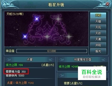天命系统,每点亮一颗星星,都需要消耗350点精力值