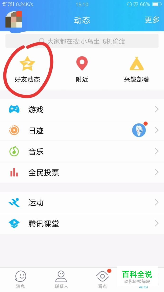 首先我们登录QQ,点击动态里面的好友动态。