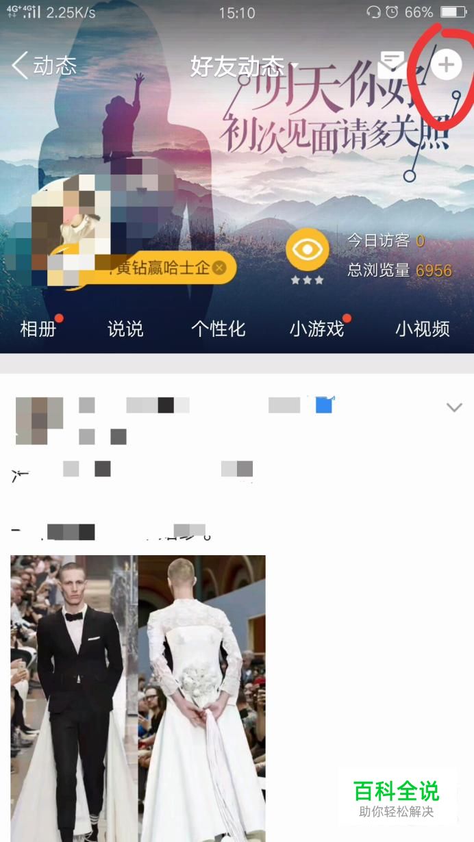 就是好友动态后,点击界面右上角的加号。