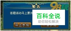 参与方式 1. 每天的答题开始时间为20:06,即在20:06答题开始的时候,所有满足答题要求的在线玩家都会收到一个邀请参加答题的弹框界面,邀请界面显示一分钟; 2. 点击【马上参加】按钮进入答题界面。 3. 每次答题一共有50道题目,每道题目需耗时25秒(20秒答题,5秒公布答案),每答对一题获得相应积分. 4. 玩家可以选择积分加倍功能和贿赂考官功能。玩家只能在答案公布之前使用积分加倍和贿赂考官功能,选择积分加倍功能后,若玩家答对题目,可以获得该道题目的双倍积分奖励。玩家使用了贿赂考官功能后,无论本道题目答对与否,也无论有没有作答,本道题目都视玩家答对。