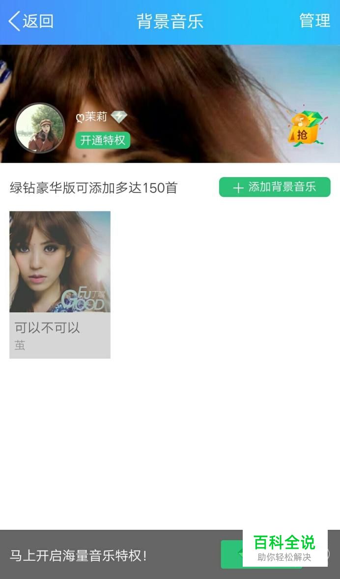 可以看到“背景音乐”这一栏,点进加入即可。不过好像要有绿钻才可以哟。