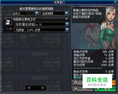 上衣有两个选择,选择暴走技能可以作为buff装,也可以选择二觉技能加一级,这样可以作为输出技能。