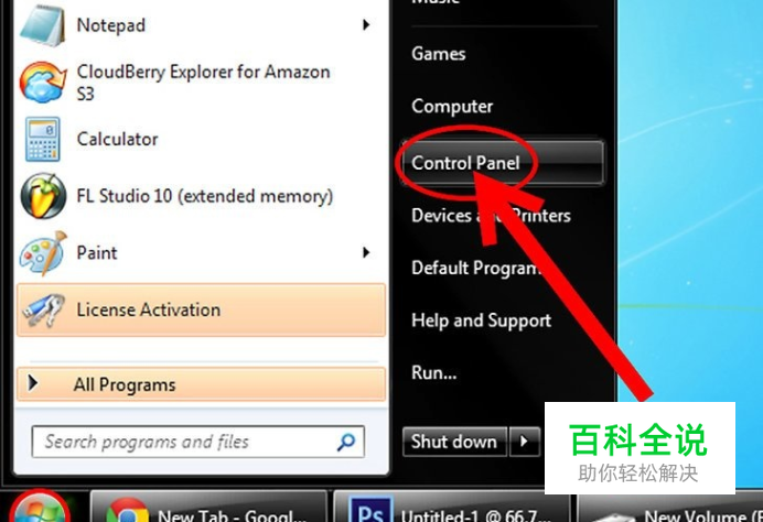 打开控制面板。控制面板可以在开始菜单中找到。