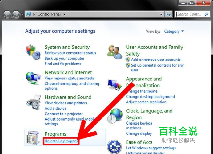 打开程序管理器。如果查看方式是“类别”,请你点击“卸载程序”;如果是按图标查看,就点击“程序与功能”。这样你就打开了计算机上所有程序的列表。