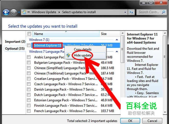 隐藏更新。如果你以后不想收到要更新Internet Explorer 11的提示,就可以在Windows更新中将其隐藏。 打开控制面板。控制面板可以在开始菜单中打开。 选择“Windows更新”。如果是按类别查看,就选择“系统与安全”,然后选择“Windows更新”。 点击 "查看可用更新"。 右键Internet Explorer 11这一项。选择”隐藏更新“。