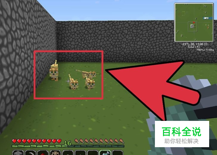 等着豹猫在和你有几个方块距离的时候停下来。这时候,慢慢地把瞄准器对准豹猫,右键点击生鱼肉。豹猫吃鱼肉的时候站着别动。