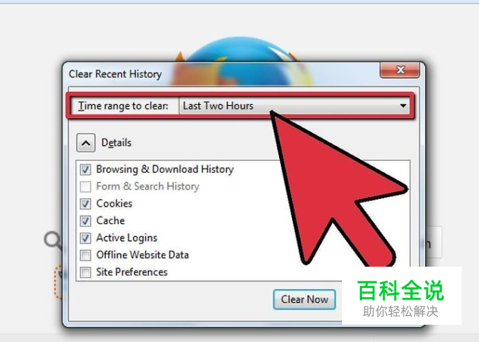 选择时间范围,在清除最近历史窗口中,选择适当的时间范围,您可以选择任何时间,从最近一小时到全部都可以。 删除更加特定的部分,在清除最近历史窗口中点击详细信息菜单的,并选择你希望删除的是什么。