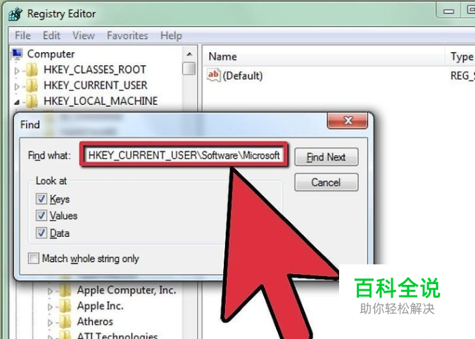 进入HKEY_CURRENT_USER \ Software \Microsoft到找到盒子。在搜索栏的结果列表中再单击图标一次。