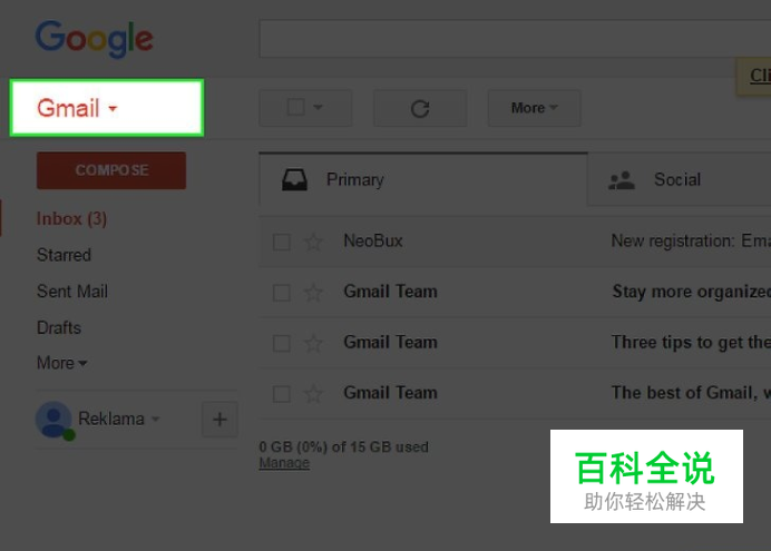 前往“设置”。点击邮箱账户右上角的黑色齿轮按钮,打开设置菜单。