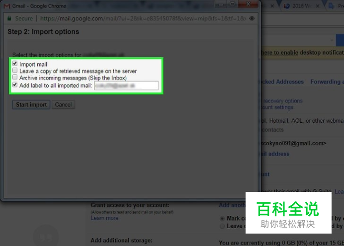 选择你想使用的导入选项。你可以选择导入全部联系人、旧邮件或其它数据。
