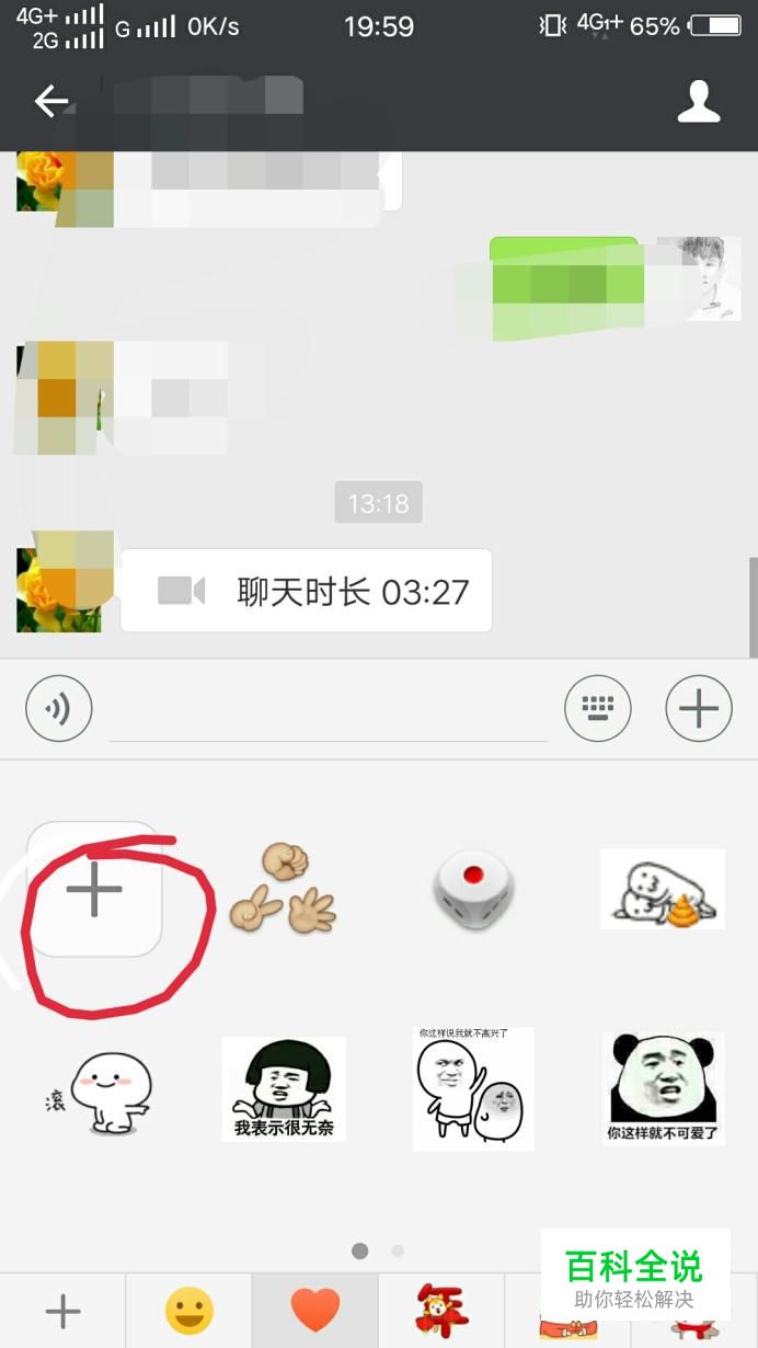 首先,点开微信,选择与一个好友的聊天界面,点击“表情包”按钮
