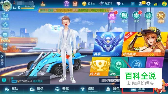 首先打开QQ飞车手机端,点击右下角的车库。