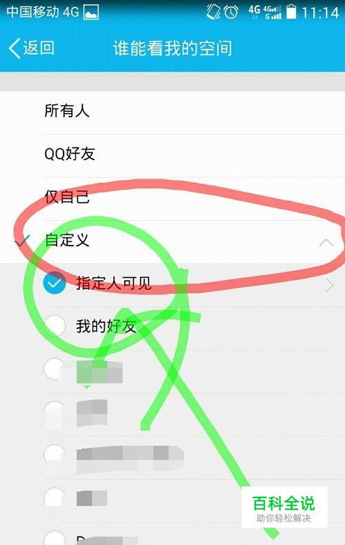 点击之后进入选择界面,如果想让所有人都要看点击选择所有人即可,如果想有选择得看 ,点击“自定义”