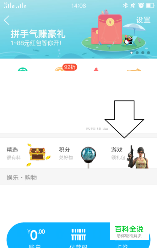 点击钱包页面中的游戏进入到游戏专区页面,如图
