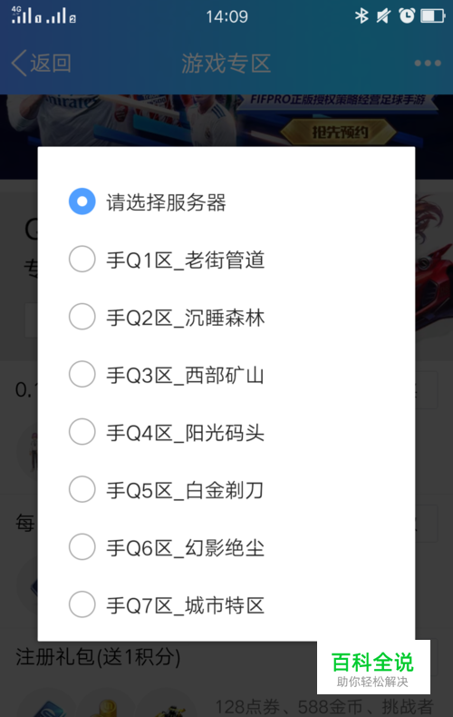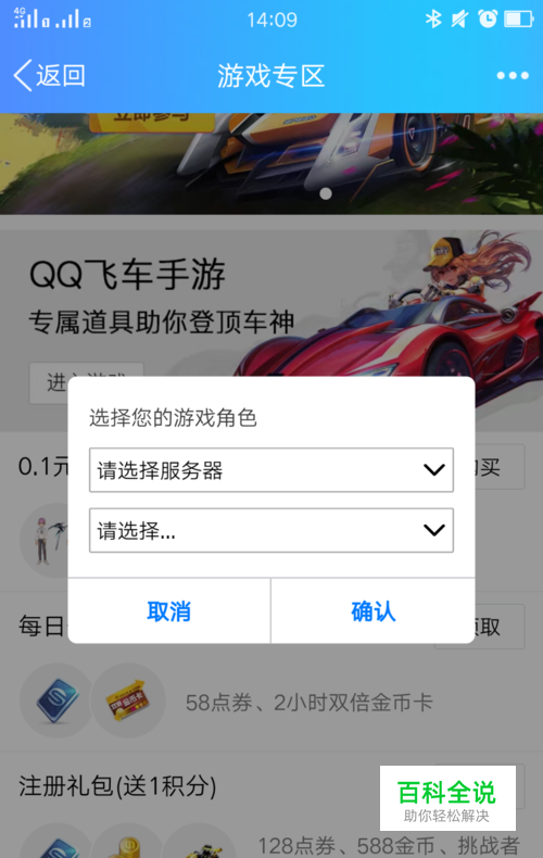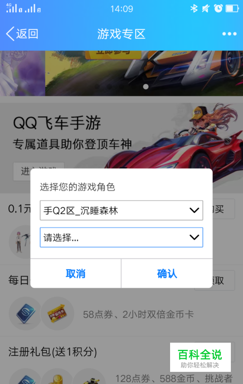 点击QQ飞车登录礼包领取弹出选择游戏角色小窗,如图