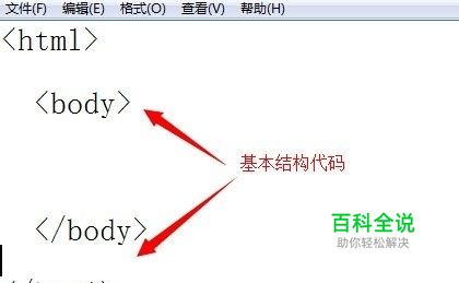 首先打开电脑上的记事本程序,输入网页基本结构代码<html><body>标签。