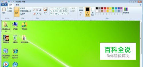 打开“画图”后,同时按下键盘上的Ctrl+V键,将之前截取的整个屏幕图片粘贴到画图里。
