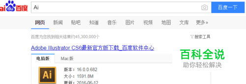 在我们电脑上,打开系统桌面的浏览器,输入搜索AI软件,并下载安装到电脑上,如图所示