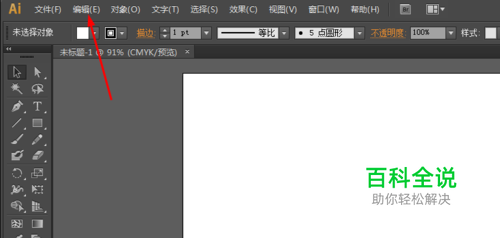 然后我们打开AI软件的界面,在菜单栏上找到编辑,如图所示