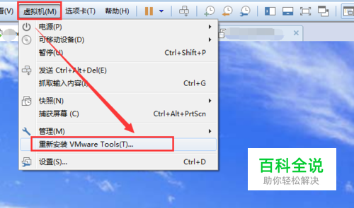 虚拟机不能复制粘贴怎么办,解决步骤一:虚拟机不能复制粘贴的很大一部分原因就是虚拟机工具没有安装或者虚拟机工具失效了,这时只要重新安装一下即可。 打开虚拟机,依次点击“虚拟机”,“重新安装虚拟机工具”。