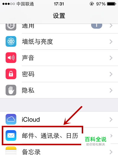 进入设置选项之后,选择“邮件、通讯录、日历”。