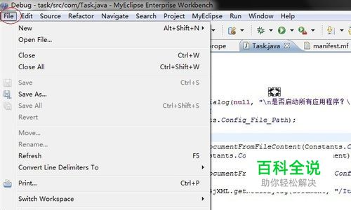 2. manifest.mf文件定义如下所示: Manifest-Version: 1.0 Main-Class: com.Task Class-Path: lib/dom4j-1.6.1.jar lib/jaxen-1.1-beta-7.jar 注意: <1> manifest.mf文件最后一行必须是一个空行。 <2> lib/dom4j-1.6.1.jar和lib/jaxen-1.1-beta-7.jar之间用一个空格隔开。 <3>每个冒号后有一个空格。