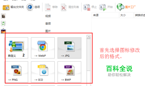 首先,打开格式工厂软件,根据系统需求,选择转换后图片的格式,jpg、png、ico、bmp等格式的图片。