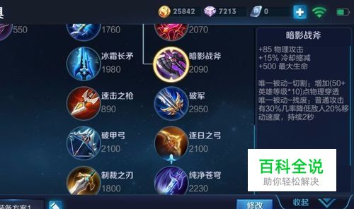 2、急速战靴+暗影战斧。急速战靴主要加快韩信攻击速度,加快被动技能的刷新。暗影战斧虽然加成的攻击力较低,但是暗影战斧加成的冷却缩减对减少韩信技能冷却很有帮助,而且暗影战斧还加成了一定的血量,可以使韩信血量增加,装备的被动切割效果是增强伤害的利器。