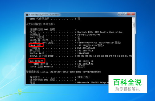 使用ipconfig/all命令查看IP地址和DNS是否正确,如果IP或DNS不正确,要检查下路由器的设置。