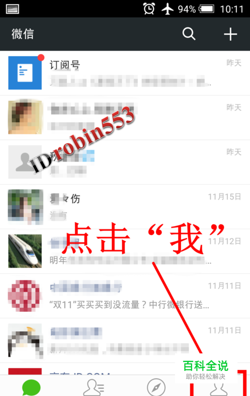 打开微信客户端, 然后点击微信界面右下角的“我”。